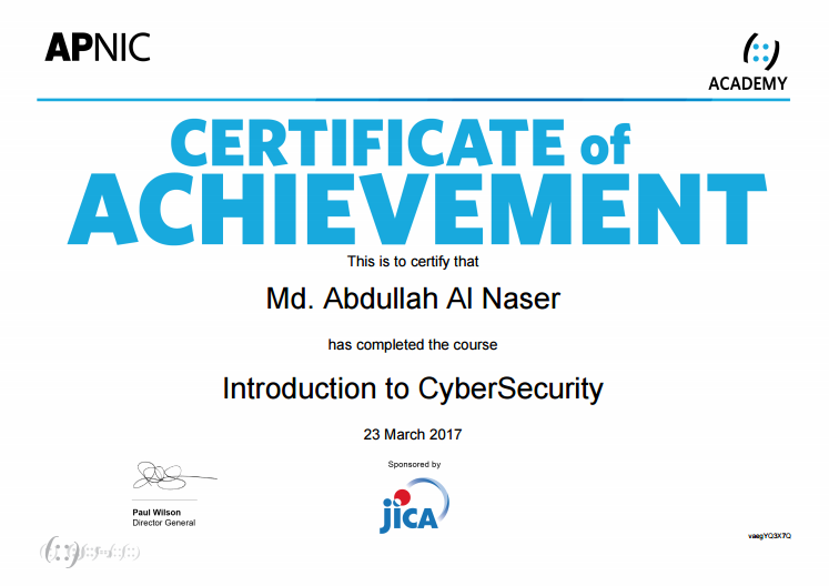 “সাইবার সিকিউরিটি” বিষয়টি কি এবং “সাইবার সিকিউরিটি” এর বেসিক কিছু টার্ম নিয়ে সম্প্রতি ASIA Pacific Network Information Center (APNIC) জাপানের Japan International Cooperation Agency (JICA) এর সহায়তায় একটি অনলাইন কোর্স চালু করেছে।
