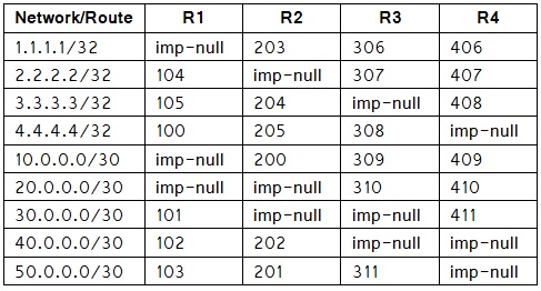 আমরা যদি প্রতিটি রাউটারের Local Label ডাটাবেজ একটি টেবিলে আকারে সাজাই তাহলে টেবিলটি হবে নিম্নরূপঃ