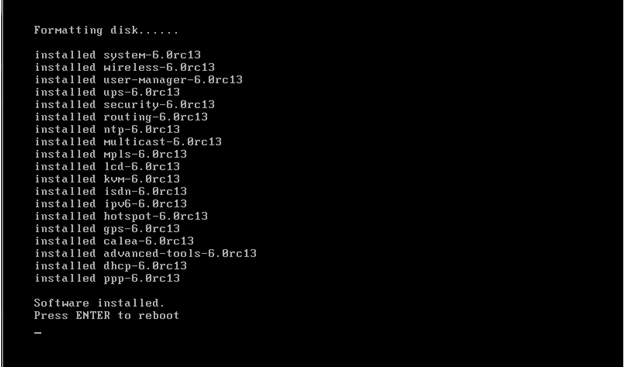 আমরা y প্রেস করবো। এতে করে ইন্সটলেশন প্রসেস শুরু হবে। MikroTik Router OS ইন্সটল হতে মাত্র কয়েক সেকেন্ড সময় লাগে। ইন্সটলেশন শেষ হলে মেশিনটি রিবুট দিতে হবে।