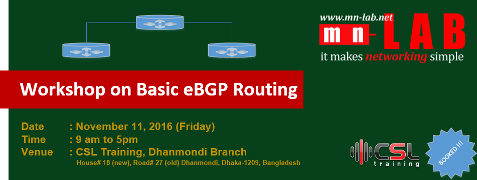 • Participants must have clear understanding on IP addressing and sub-netting. • Participants must have clear understanding on IP routing such as Static, RIP, EIGRP and OSPF. • Participants must complete CCNA level training/certification. • Participants must have experience in GNS3 emulator software. • Participants must bring their own laptops, power adapters, short UTP cables etc. • Participants must have willingness to note the class lectures.