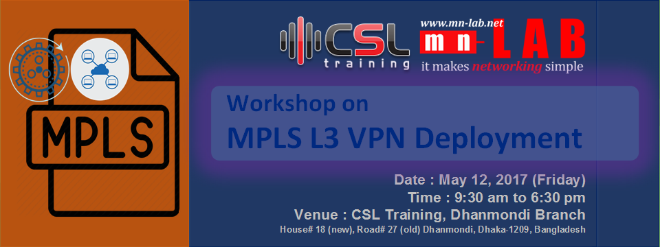 • Participants must have clear understanding on OSPF, eBGP, and iGP. • Participants must complete CCNA level training/certification. • Participants must bring their own laptops, power adapters, short UTP cables etc. • Participants must have willingness to note the class lectures.